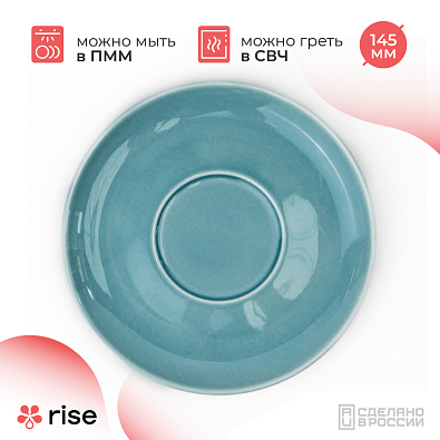 Блюдце выполнено из высококачественного фарфора с высокой прочностью. Также посуда RISE удобна в использовании, ее можно мыть в посудомоечной машине.