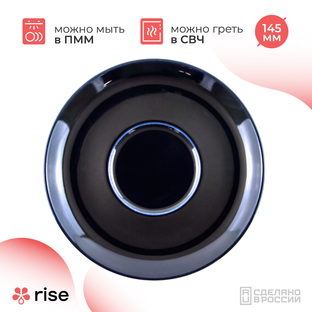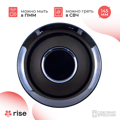 Блюдце выполнено из высококачественного фарфора с высокой прочностью. Также посуда RISE удобна в использовании, ее можно мыть в посудомоечной машине.