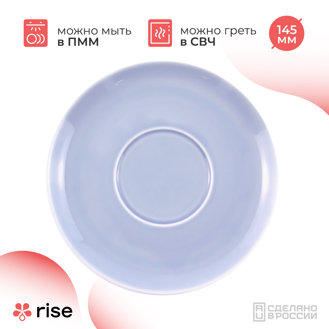 Блюдце выполнено из высококачественного фарфора с высокой прочностью. Также посуда RISE удобна в использовании, ее можно мыть в посудомоечной машине.