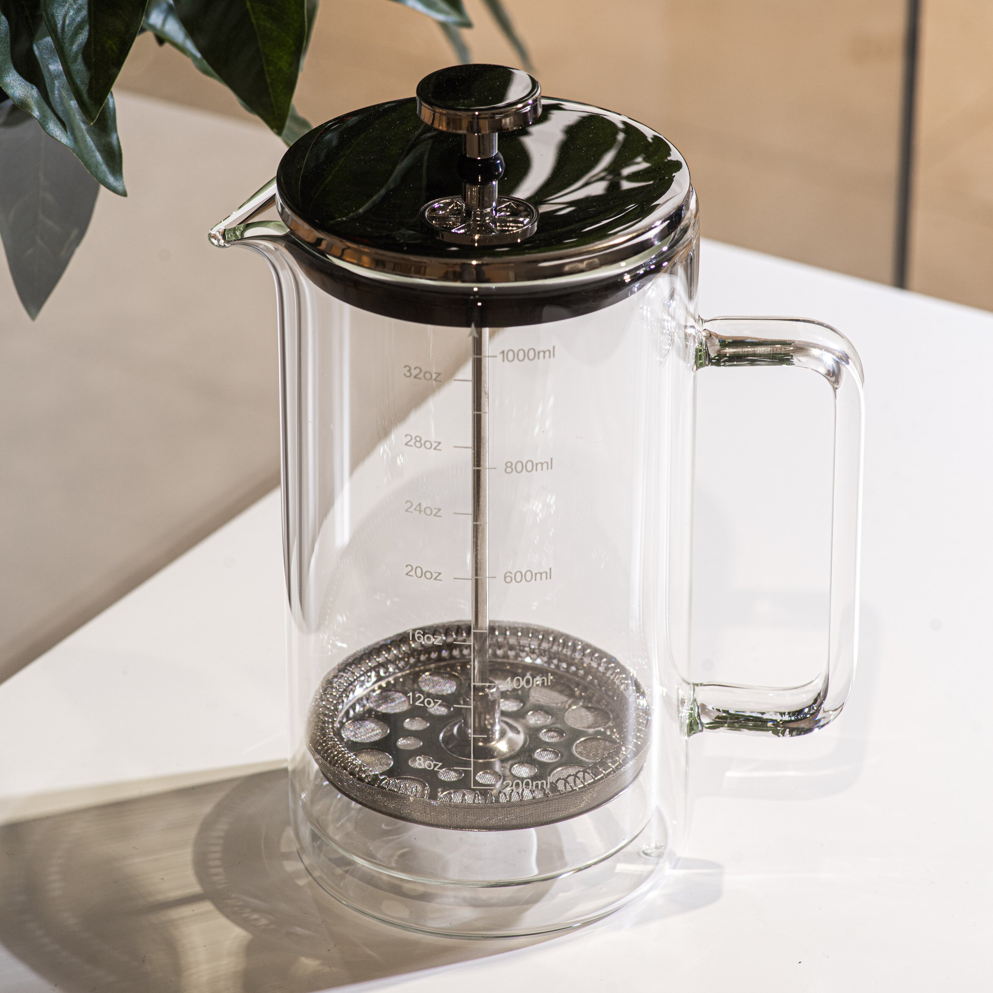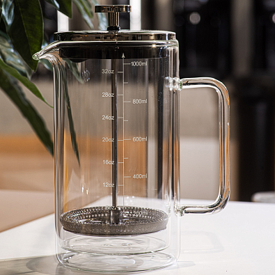 ☕ Универсальное применение: Френч-пресс подходит для приготовления как кофе, так и чая. Его объем - 1000 мл, что делает его идеальным для одиночного использования или для наслаждения в компании друзей.