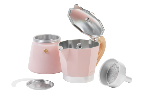 Гейзерная кофеварка Gnali&Zani VENEZIA розовая на 6п, для индукции