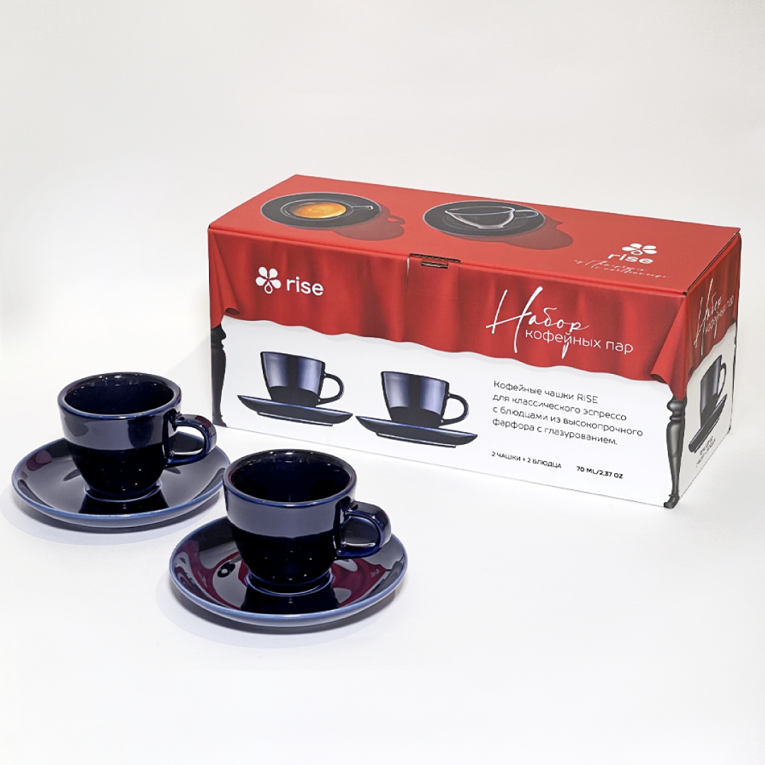 Набор 2 кофейные пары RISE 70 мл кобальтово-синие