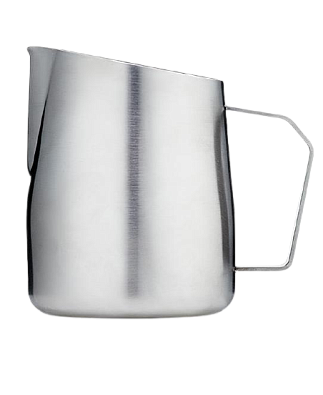 Скошенный верх питчера позволяет контролировать процесс взбивания, а конусообзарное дно улучшает смешивание молока при взбивании.