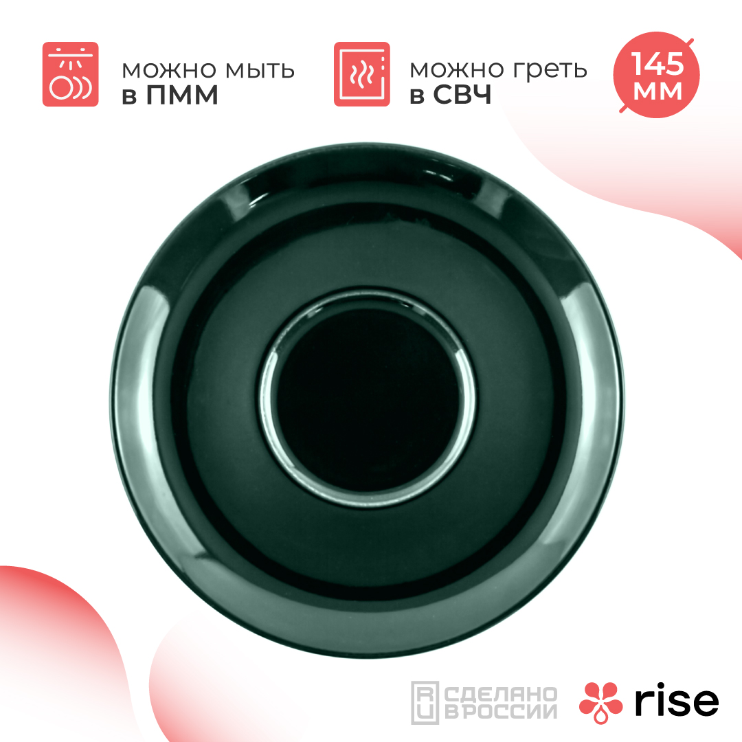 Блюдце выполнено из высококачественного фарфора с высокой прочностью. Также посуда RISE удобна в использовании, ее можно мыть в посудомоечной машине.