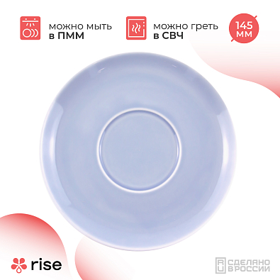 Блюдце выполнено из высококачественного фарфора с высокой прочностью. Также посуда RISE удобна в использовании, ее можно мыть в посудомоечной машине.