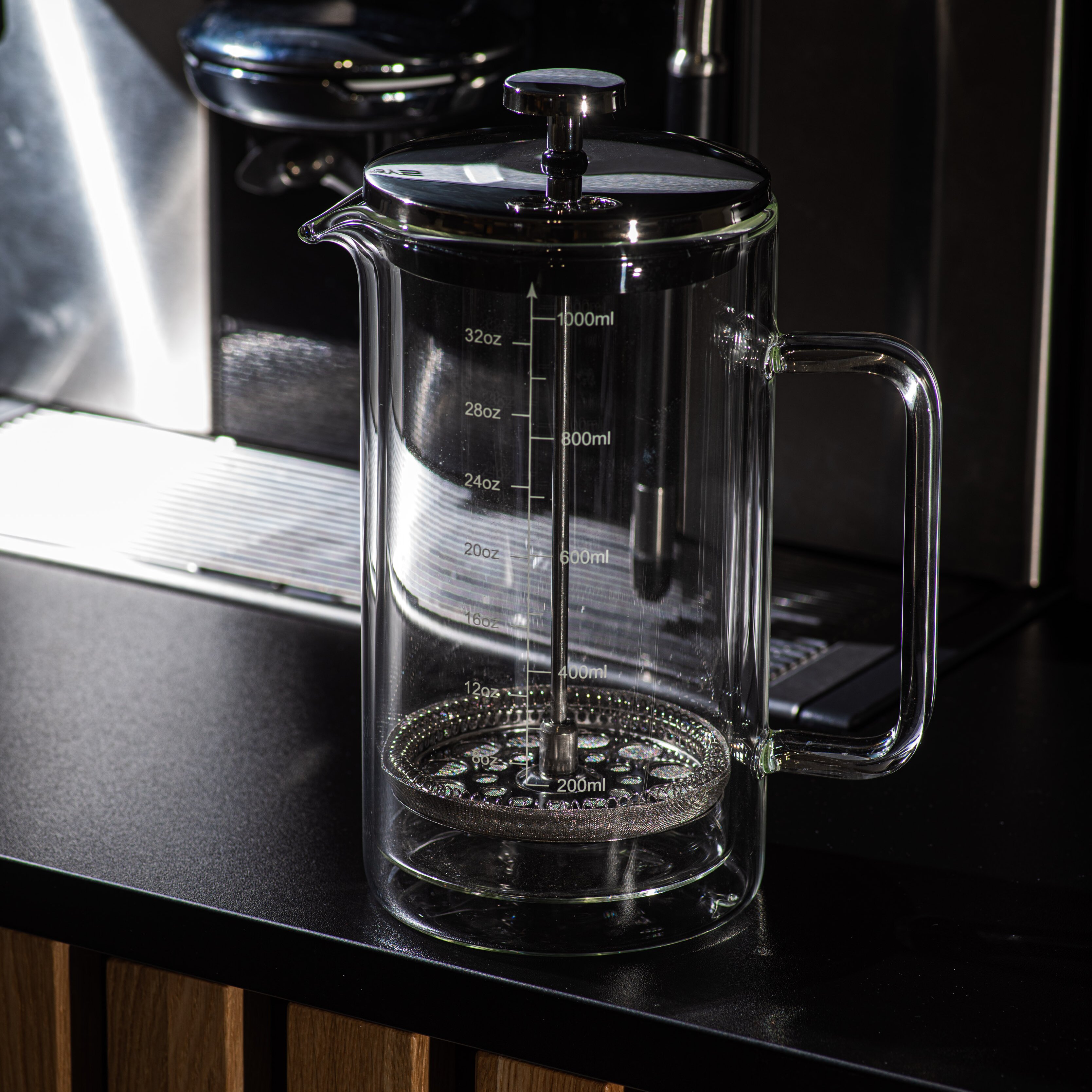 ☕ Универсальное применение: Френч-пресс подходит для приготовления как кофе, так и чая. Его объем - 1000 мл, что делает его идеальным для одиночного использования или для наслаждения в компании друзей.