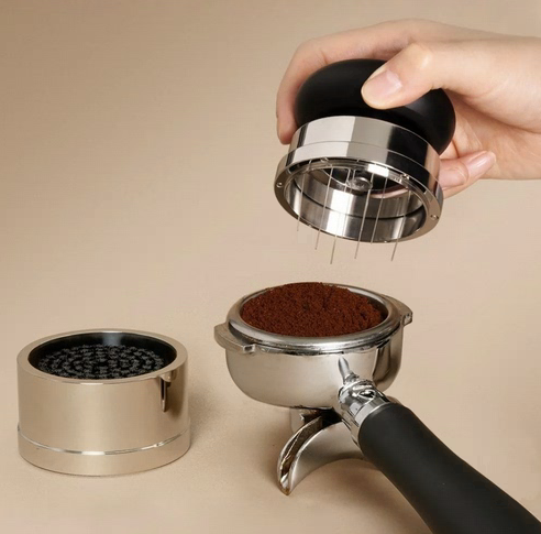 Игольчатый распределитель для кофе — профессиональный инструмент для подготовки кофейной таблетки перед темпером: 8 тонких игл 0,3 мм эффективно разрыхляют помол, устраняют комки и равномерно распределяют кофе по корзине, формируя ровную поверхность. Орбитальный механизм на двойных подшипниках обеспечивает плавное вращение в обе стороны — идеально для 58-мм корзин и портафильтров. Рукоятка игольчатого распределителя кофе выполнена из стали — приятна в хвате, не скользит и презентабельно выглядит.