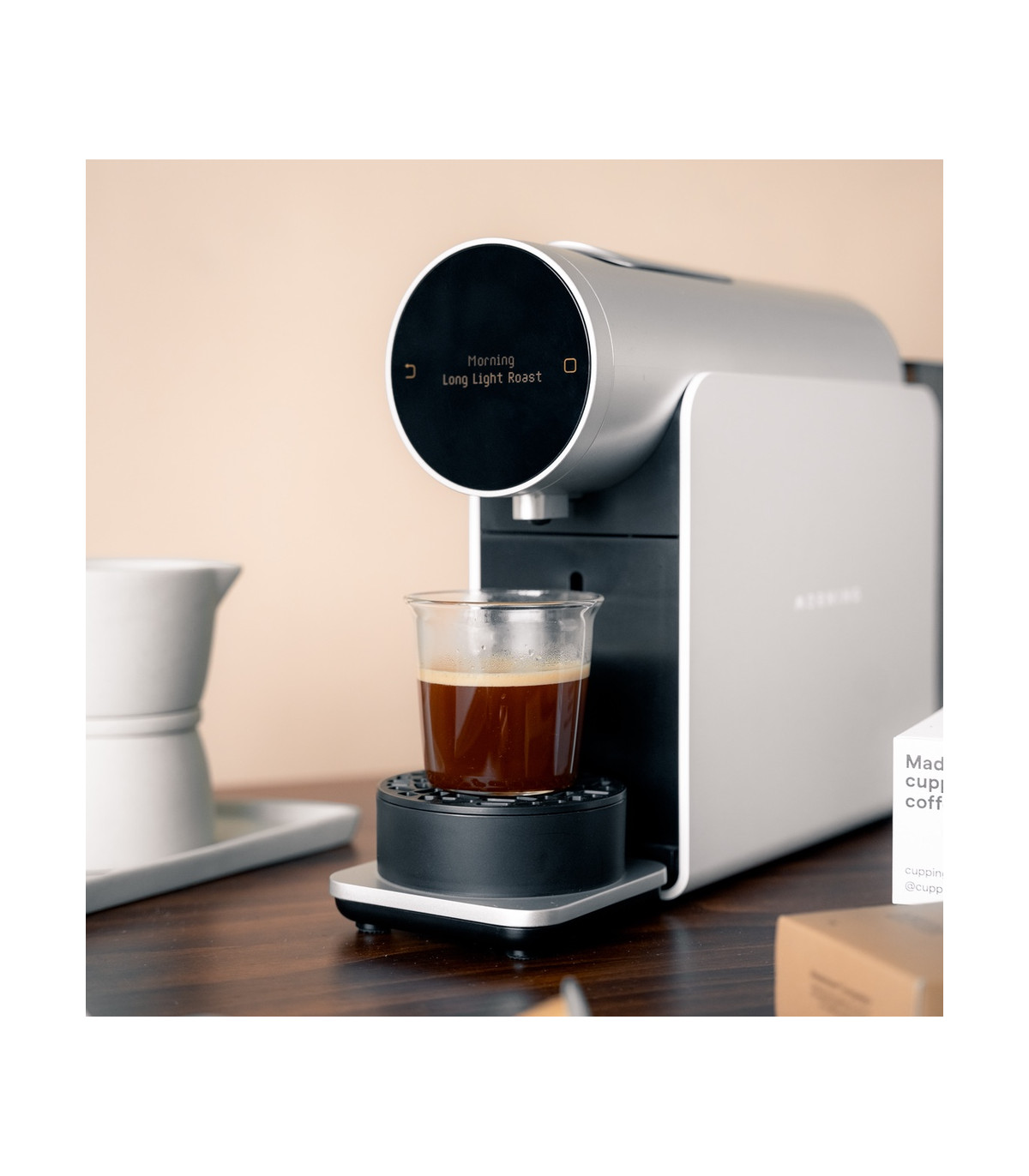 У Morning подключена уникальная функция Bloom & Brew. Она позволяет управлять профилями давления, капсулы наполняются небольшим количеством воды, что увлажняет кофейную гущу и обеспечивает более равномерную экстракцию. Время предварительной заварки для каждого кофе зависит от времени экстракции кофе.