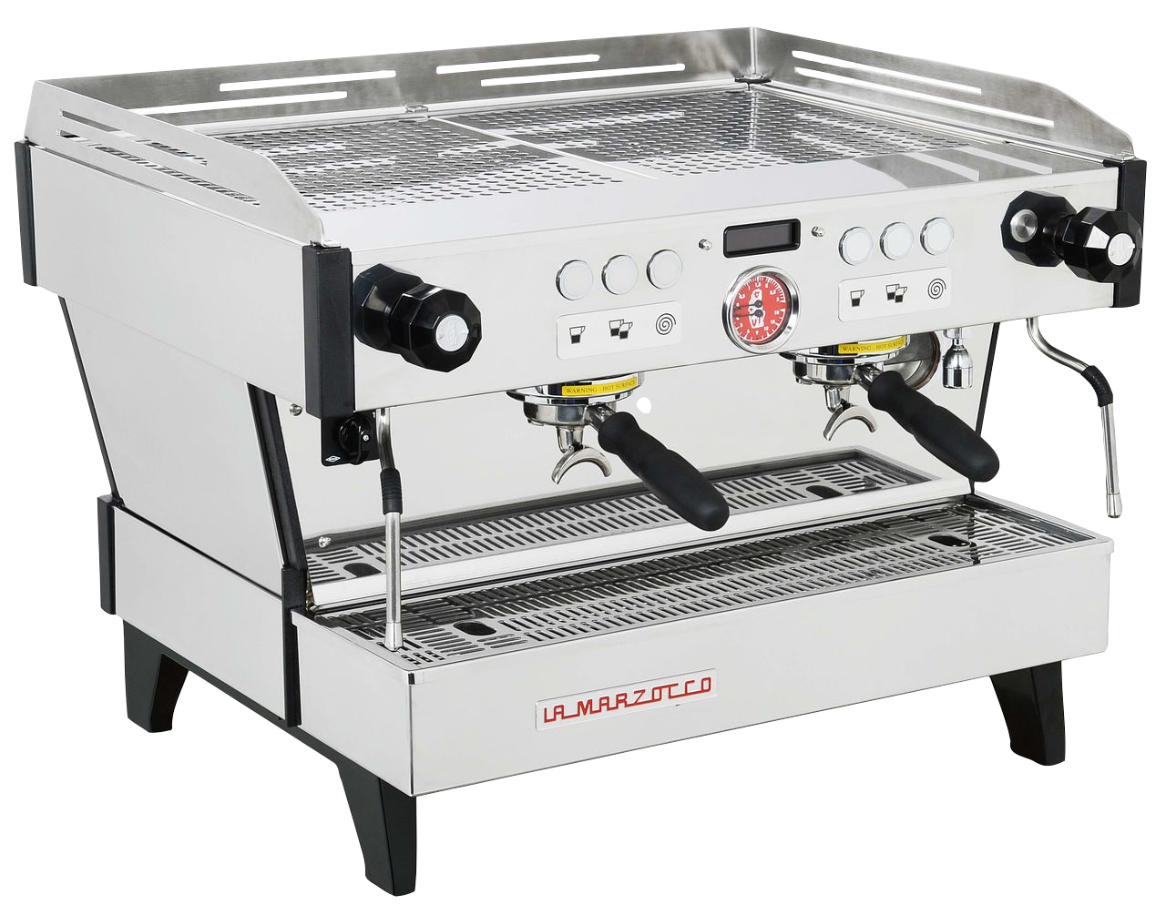 Корпус, портафильтры и корзинки выполнены из нержавеющей стали. Эспрессо-кофемашина собрана вручную.
