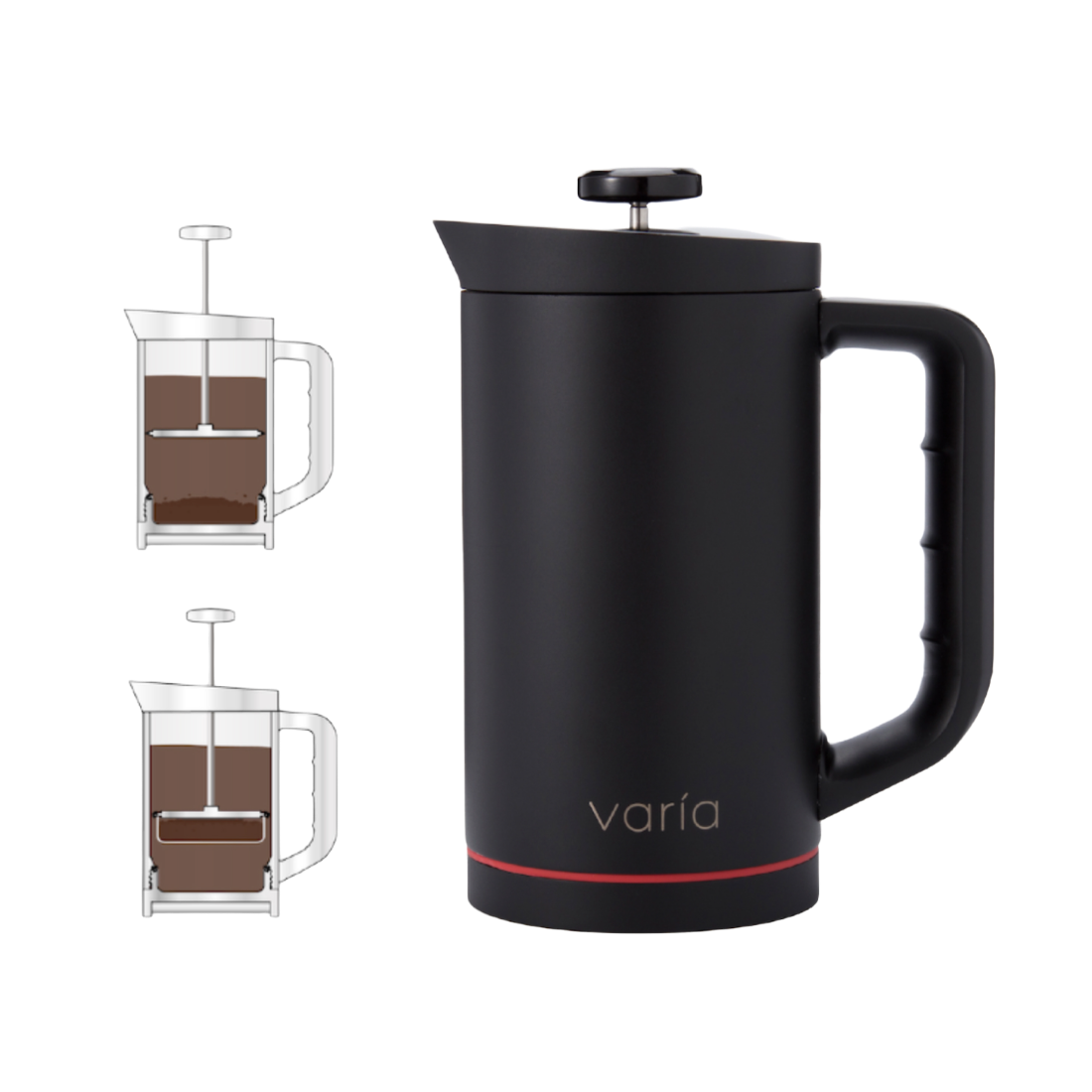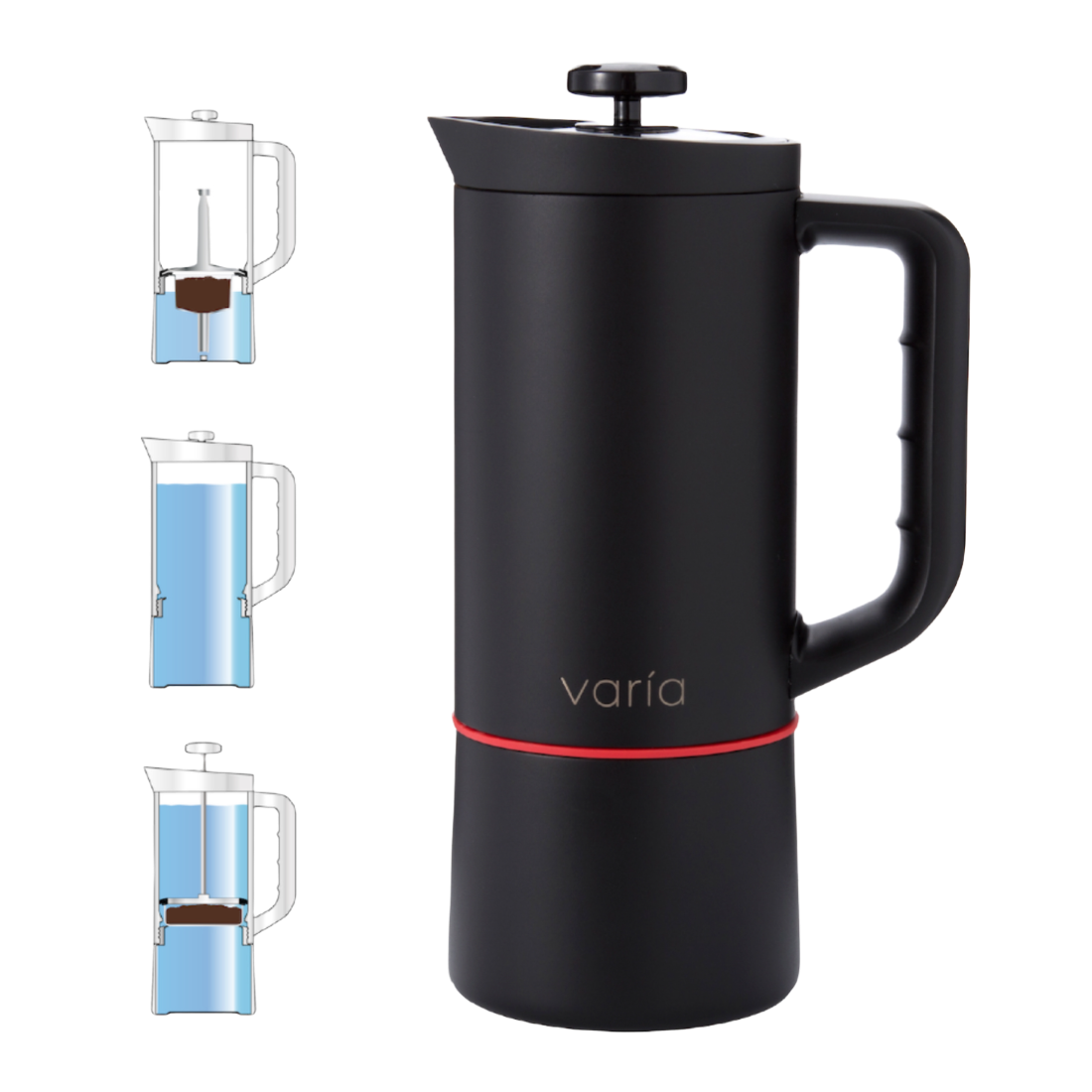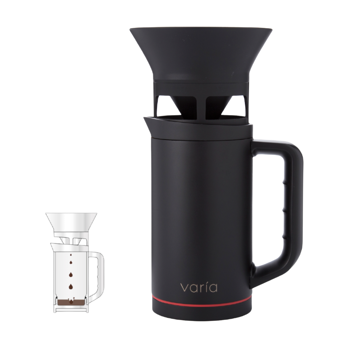 -Кофеварка Varia Multi Brewer чёрного цвета (кувшин, бойлер, основание, крышка, плунжер, камера/фильтр для гейзерного способа варки);